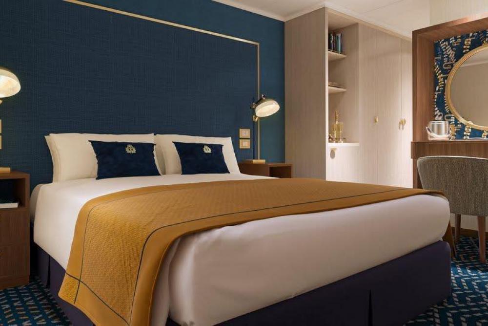 Positioned to offer sea views, our oceanview staterooms provide a private enclave from which to watch the world go by. Calming blue tones, warm wooden furnishings, and perfectly framed views are the backdrop to thoughtful features and luxurious amenities, all organised by a dedicated steward to ensure guests are always attentively looked after. Stateroom size from approximately 206 sq. ft. Deluxe Oceanview stateroom size from approximately 252 sq. ft. (stateroom sizes and configuration may vary by position and grade).