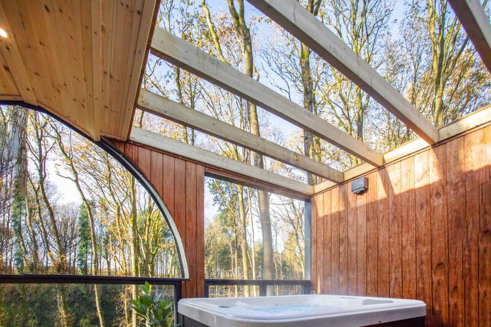 • Private hot tub and heated balcony in a tranquil woodland setting