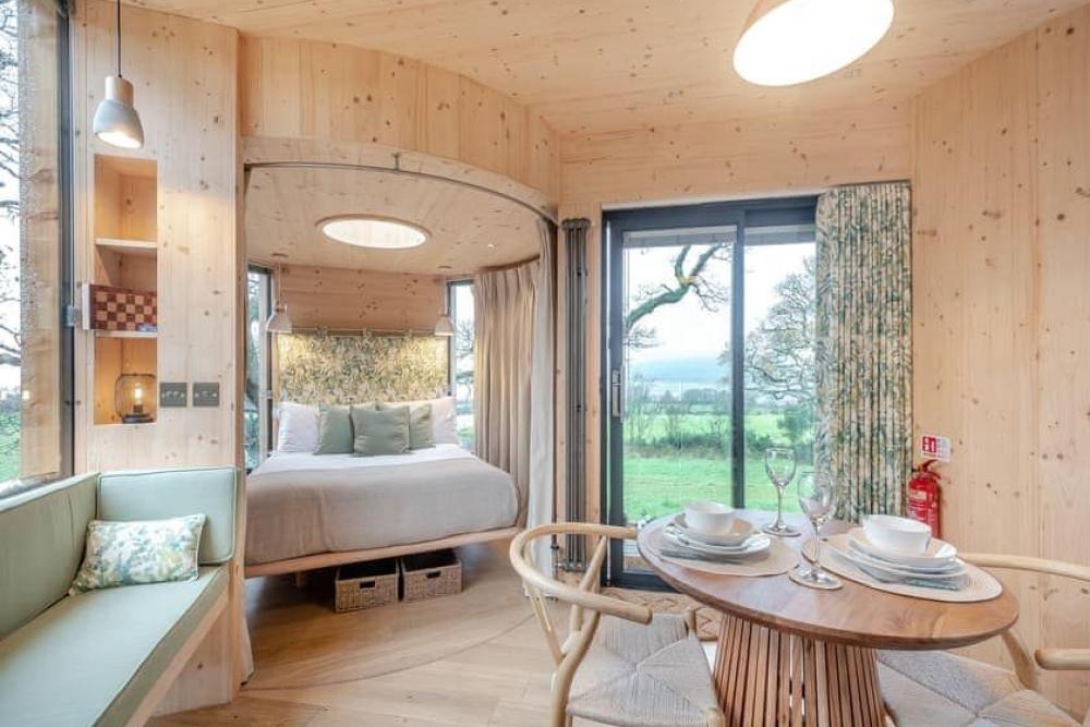 As you enter you’ll be greeted by an inviting open plan living and bedroom area, carefully curated to provide comfort, luxury, and a sense of being one with nature. The modern shower room ensures you have all the amenities you need for a delightful stay. The floor-to-ceiling windows are nothing short of captivating, perfectly framing the ever-changing panorama outside. Imagine waking up to the soft rays of sunlight filtering through the leaves, or savouring the magical colours of the sunset as they dance across the estuary.