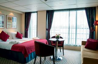 The spacious Juliette Balcony Rooms on Strauss Deck 2 offer a generous amount of room for an enjoyable river cruise experience. These rooms also include floor-to-ceiling sliding glass doors, plenty of wardrobe space, a choice of bed configuration (double or twin), an en suite bathroom with shower and toilet, a direct-dial telephone, a hairdryer, a flat-screen TV, individual climate control and a safe.