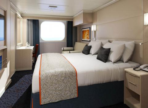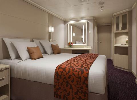 Step into a private haven characterized by light, space and elegance. Our interior designer, guided by guest feedback, was given the freedom to completely reimagine staterooms aboard. The result: welcome modern touches such as bedside USB ports and frameless shower glass doors, as well as luxe appointments like customized wooden cabinetry. 2 lower beds convertible to 1 queen-size bed, shower. Approximately 175–282 sq. ft.