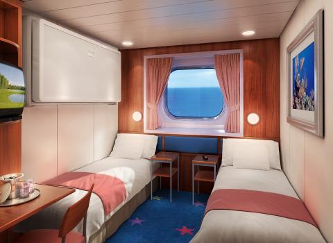 These Oceanview Staterooms have room for up to four guests, with two lower beds that convert into a queen-size bed and additional bedding to accommodate up to two more guests. You'll also have a big picture window to enjoy the amazing view.