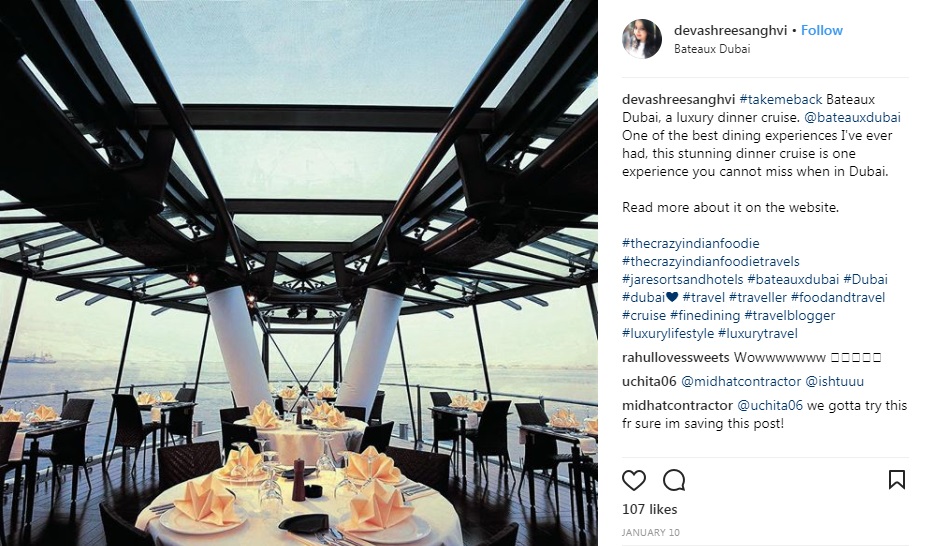 If you want the red carpet experience then the elegant Bateaux Dubai cruise offers a bespoke experience to explore the waterways of Dubai Creek. You can take in the views while enjoying freshly prepared gourmet cuisine in the comfort of a glass-enclosed, air-conditioned luxury vessel. The panoramic views of Dubai along with live entertainment, and a glass of bubbly makes their signature personalised service. A boast worthy picture to put on your Facebook.