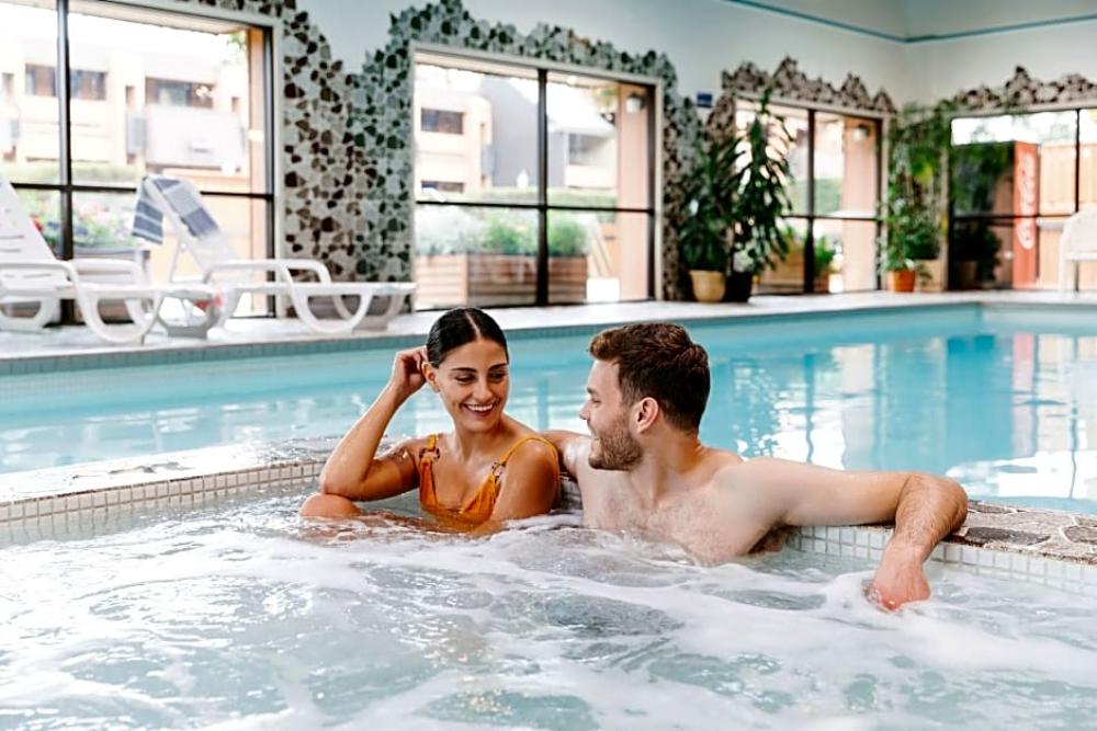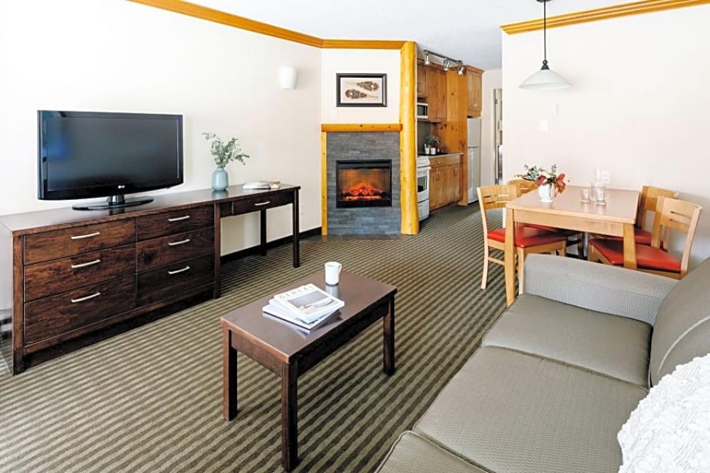 Located on the main street, a little way outside of town, the Marmot Lodge has 107 rooms with exterior entry, as well as a reception. The building has a retro look, and each apartment has its own front door so you don't need to file through reception to get back to your space. And you've got some extra facilities here too. You can take a post-piste dip in the heated indoor pool, or warm yourself all the way through in the sauna. If you're a hot tub fan, you can choose between two – one inside by the pool and the other outside so you can look out at the snowy scenery while you soak.