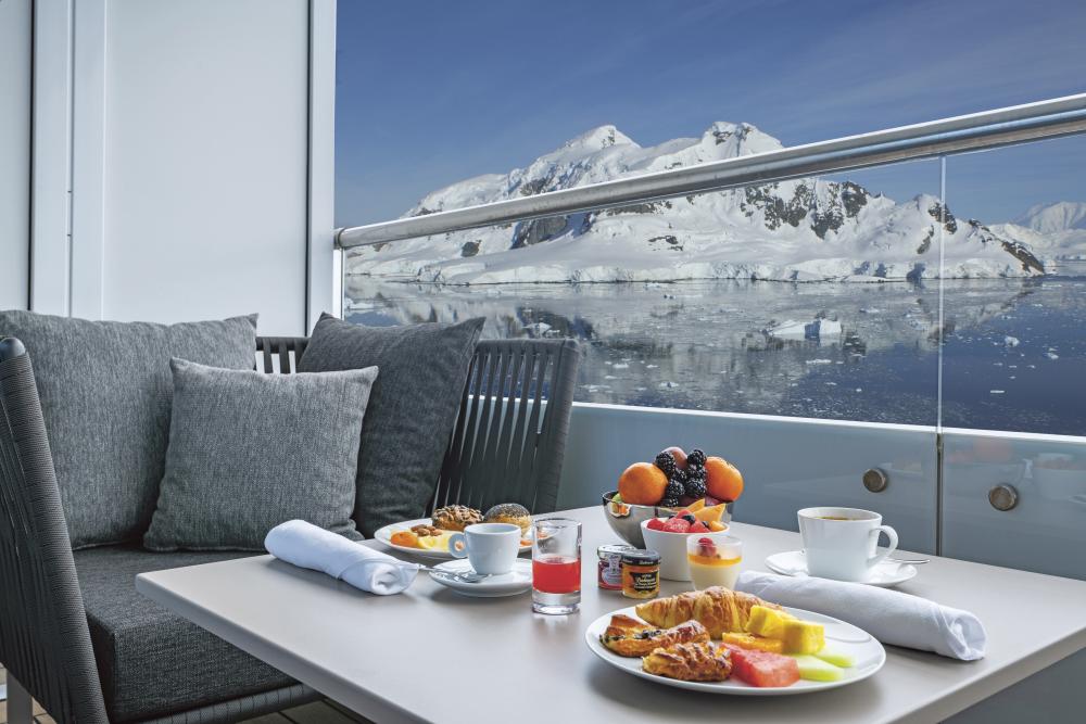 Arriving in Antarctica for the first time is unlike anything you have experienced before. Welcome to a challenging, unpredictable, and stunningly beautiful environment that always finds a way to surprise you. Open your floor-to-ceiling sliding doors and step out onto the private verandah of your suite. See icebergs of different shapes and sizes sculpted by nature, majestic, glaciated mountains towering out of the ocean thousands of metres tall and enjoy the search for spotting penguins, seals, and whales. A truly unique way to wake up and start your day of discovery.