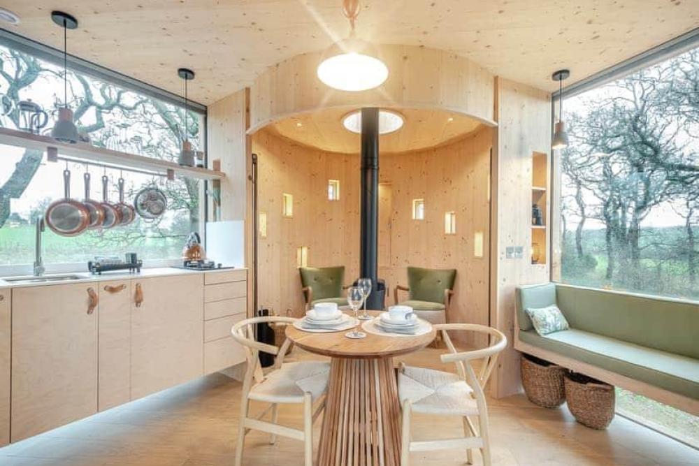 As you enter you’ll be greeted by an inviting open plan living and bedroom area, carefully curated to provide comfort, luxury, and a sense of being one with nature. The modern shower room ensures you have all the amenities you need for a delightful stay. The floor-to-ceiling windows are nothing short of captivating, perfectly framing the ever-changing panorama outside. Imagine waking up to the soft rays of sunlight filtering through the leaves, or savouring the magical colours of the sunset as they dance across the estuary.
