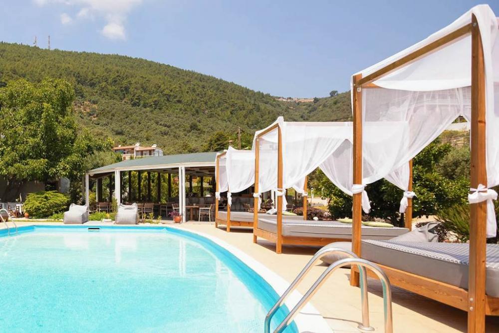 Nestled among beautifully maintained gardens in Megali Ammos, the Skiathos Avaton Garden is a welcoming retreat, perfect for couples and friends seeking laid-back days in the sun.